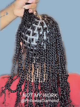 (les mèches sont ajoutés en grande quantité pour créer de grosses tresses)